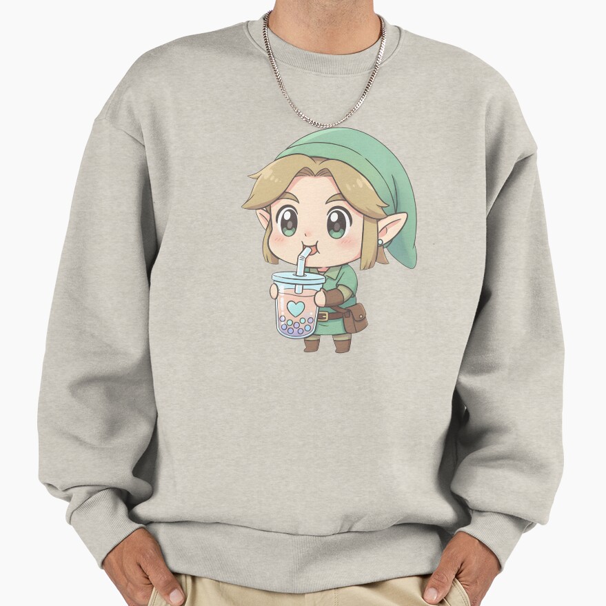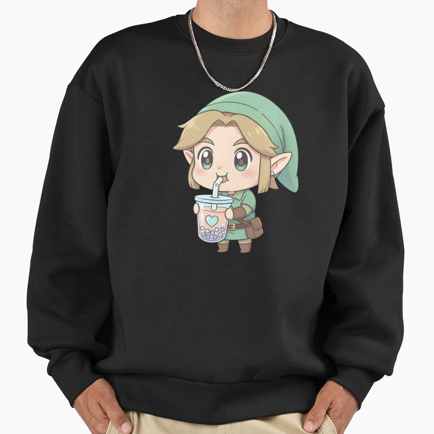 Cute Chibi Link Drinking Boba Tea Sweatshirt